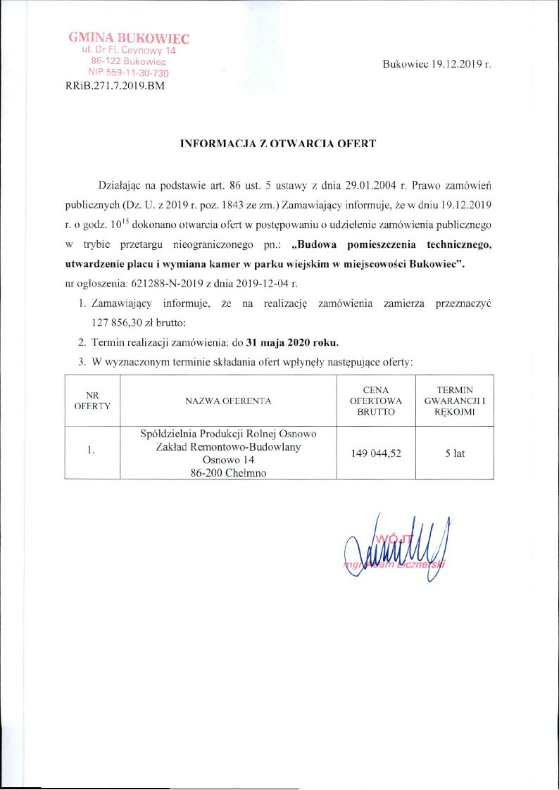 | wytworzono: | data: - 04.12.2019 | przez: Adam Licznerski - Wójt Gminy Bukowiec | |