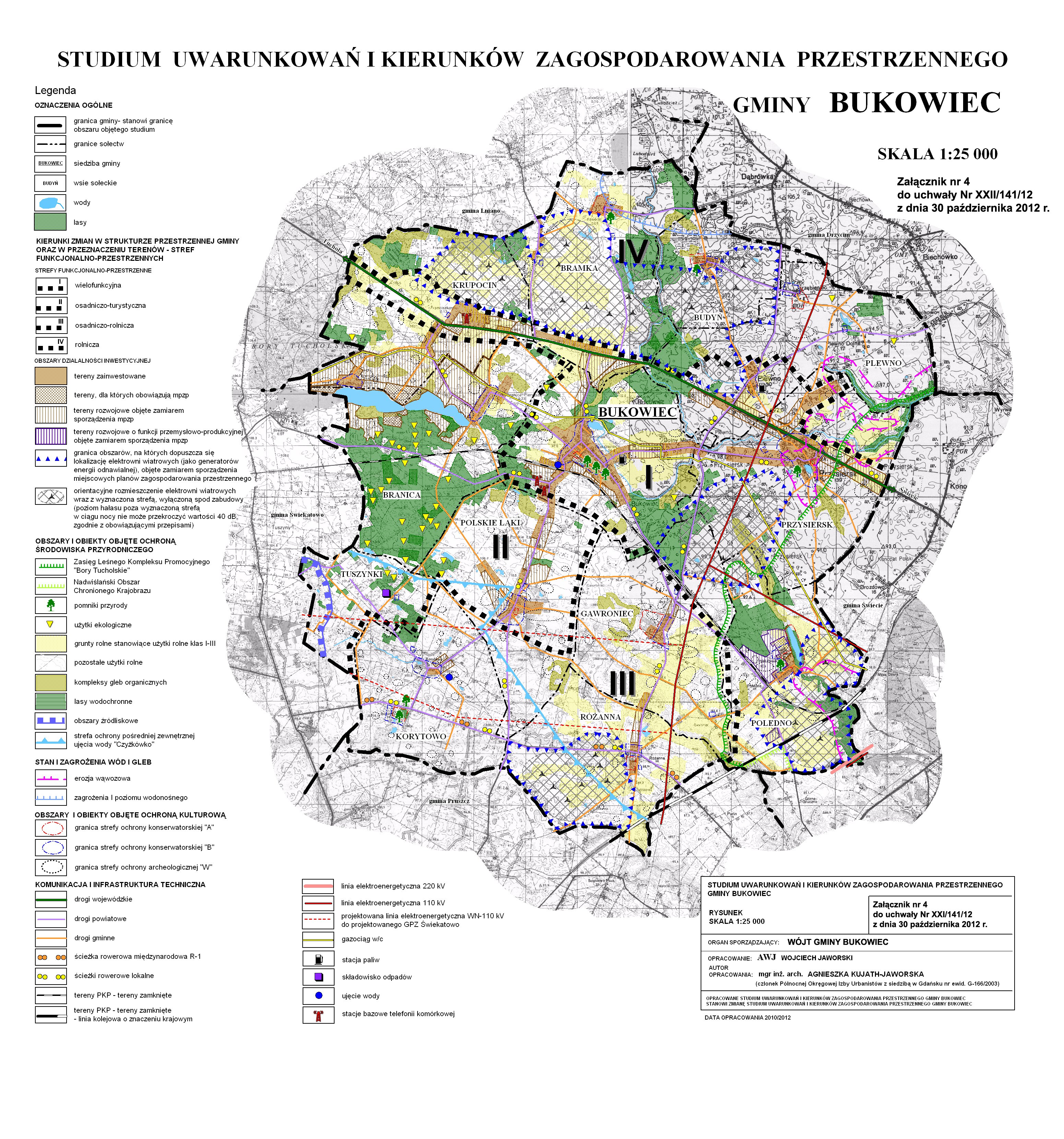 § 1. Uchwala się Studium uwarunkowań i kierunków zagospodarowania przestrzennego gminy Bukowiec, składające się z: 1) tekstu studium: a) część pierwsza: uwarunkowania rozwoju gminy - stanowiąca załącznik nr 1 do uchwały, b) część druga: kierunki rozwoju gminy – stanowiąca załącznik nr 2 do uchwały, c) część trzecia: uzasadnienie zawierające objaśnienia przyjętych rozwiązań oraz syntezę ustaleń projektu studium - stanowiąca załącznik nr 3 do uchwały; 2) rysunku studium w skali 1:25 000, stanowiącego załącznik nr 4 do uchwały; 3) rozstrzygnięcia o sposobie rozpatrzenia uwag, stanowiącego załącznik nr 5 do uchwały. § 2. Traci moc uchwała nr IV/34/07 Rady Gminy Bukowiec z dnia 31 stycznia 2007 r. w sprawie uchwalenia Studium uwarunkowań i kierunków zagospodarowania przestrzennego gminy Bukowiec. § 3. Wykonanie uchwały powierza się Wójtowi Gminy Bukowiec. § 4. Uchwała wchodzi w życie z dniem podjęcia.Przewodniczący Rady Gminy