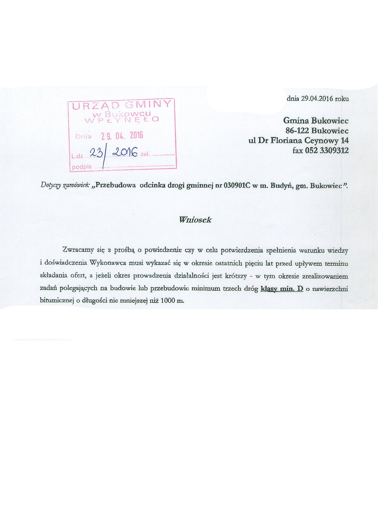 - Data składania ofert 04.05.2016